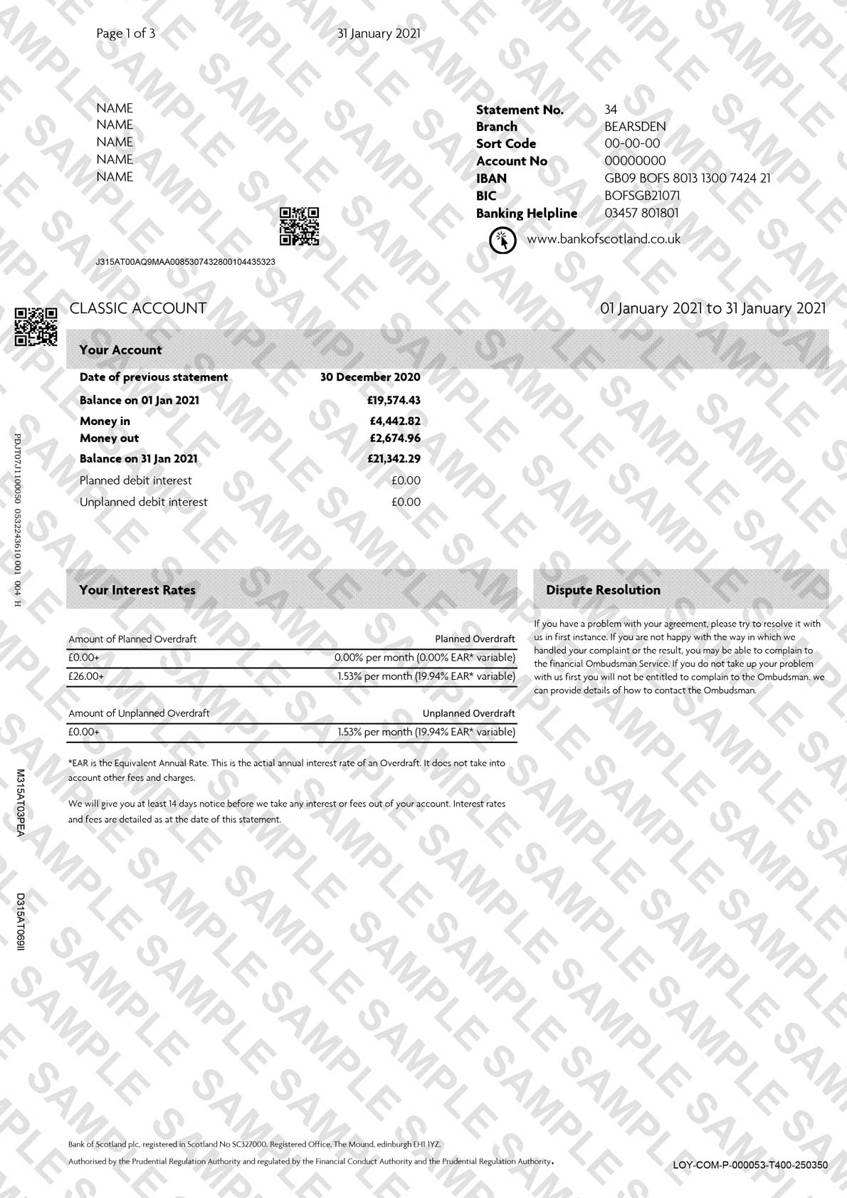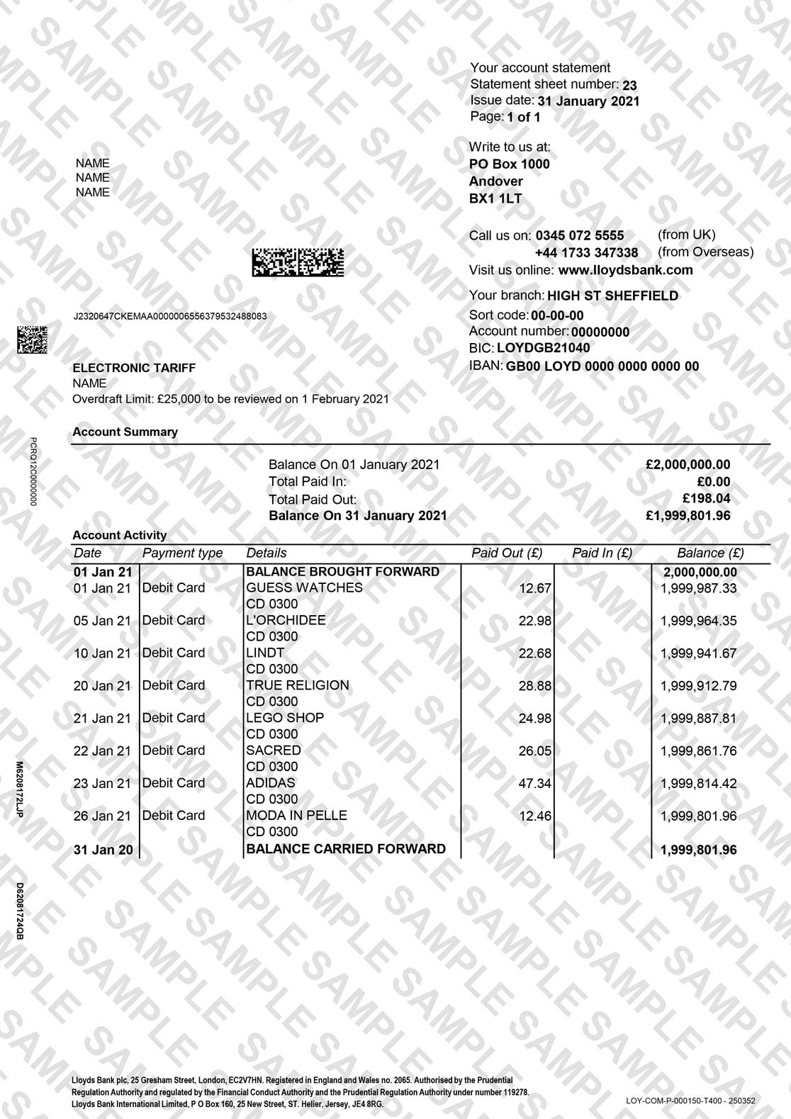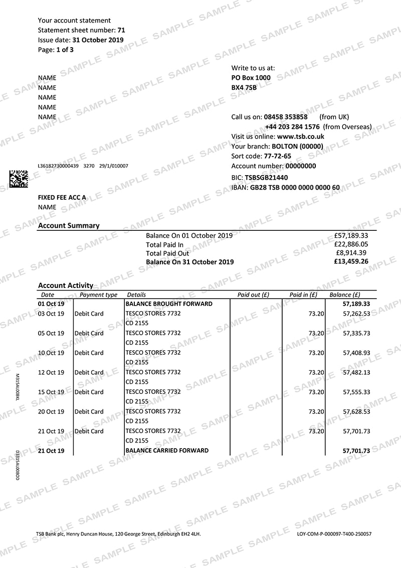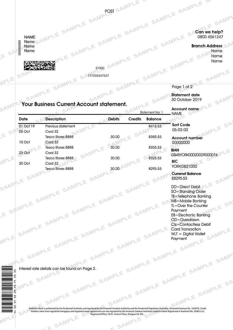 • We currently only have 2019 versions of Irish bank statements. If you need a 2019 version, please contact us. Or if you require an updated 2020 version, you may send images of your own bank statement and we will create it free of charge.