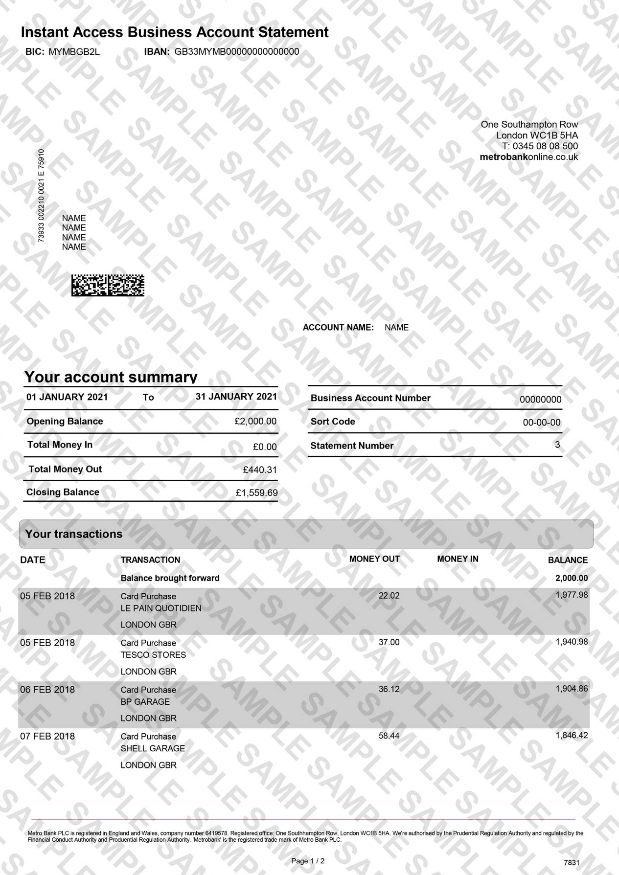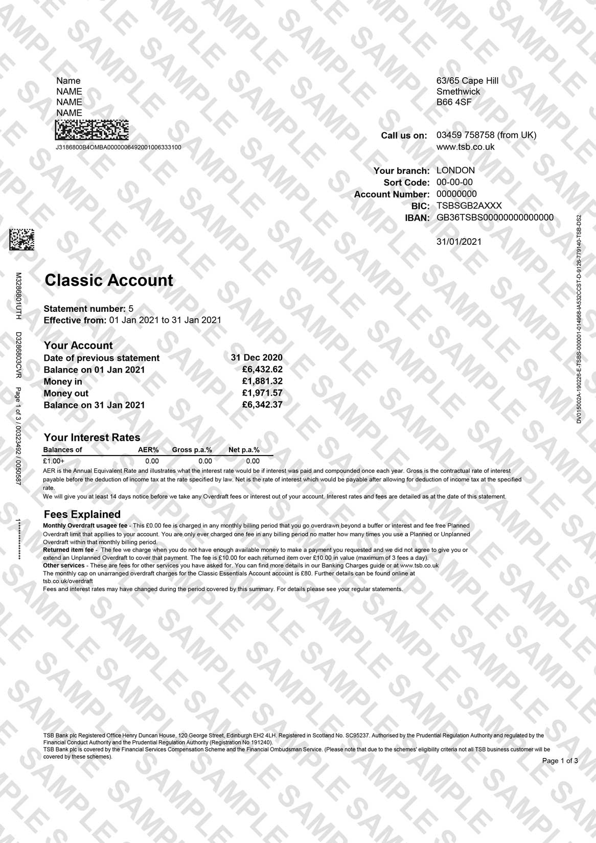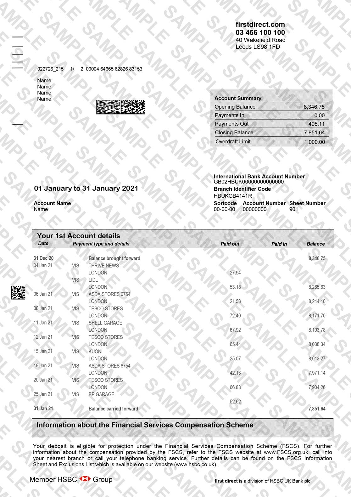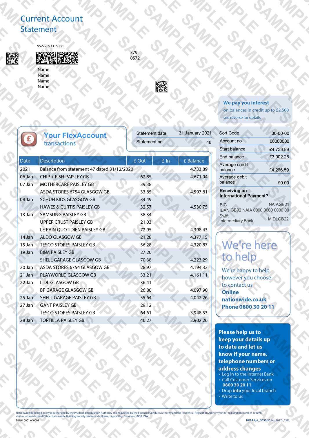 • We currently only have 2019 versions of Irish bank statements. If you need a 2019 version, please contact us. Or if you require an updated 2020 version, you may send images of your own bank statement and we will create it free of charge.